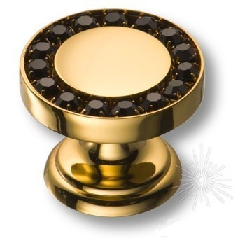 Ручка кнопка 0776-003 BLACK, материал Латунь, отделка Золото Кристаллы Swarovski, 23*d=30 мм