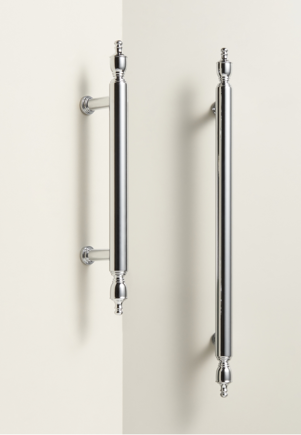 Элегантная ручка, выполненная в лучших традициях английского классического стиля. Изготовлена из цельной латуни, что гарантирует прочность и долговечность. Безупречное глянцевое хромирование подчеркивает изящество форм и придает интерьеру сдержанный блеск и респектабельный вид. Идеально подходит для мебели в кабинете, библиотеке или гостиной.